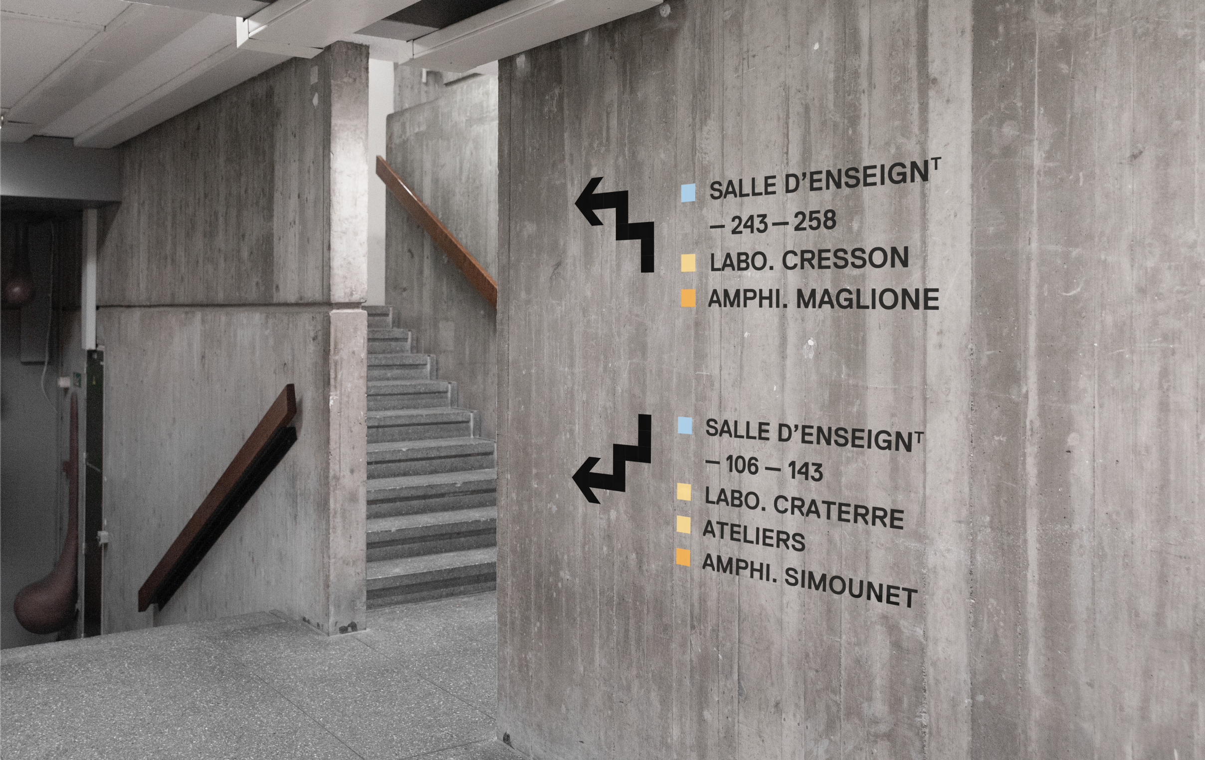 Mise en place d’une signalétique au sein des locaux de l’école nationale d’Architecture de Grenoble, située à Échirolles.